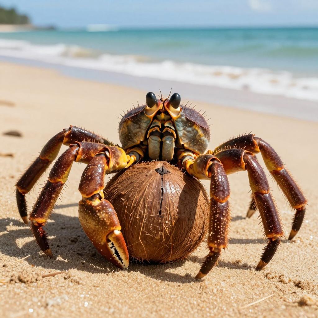 换壳:少年阶段还会找空贝壳/椰子壳保护腹部;成年后外壳钙化,不再依赖“移动住宅”