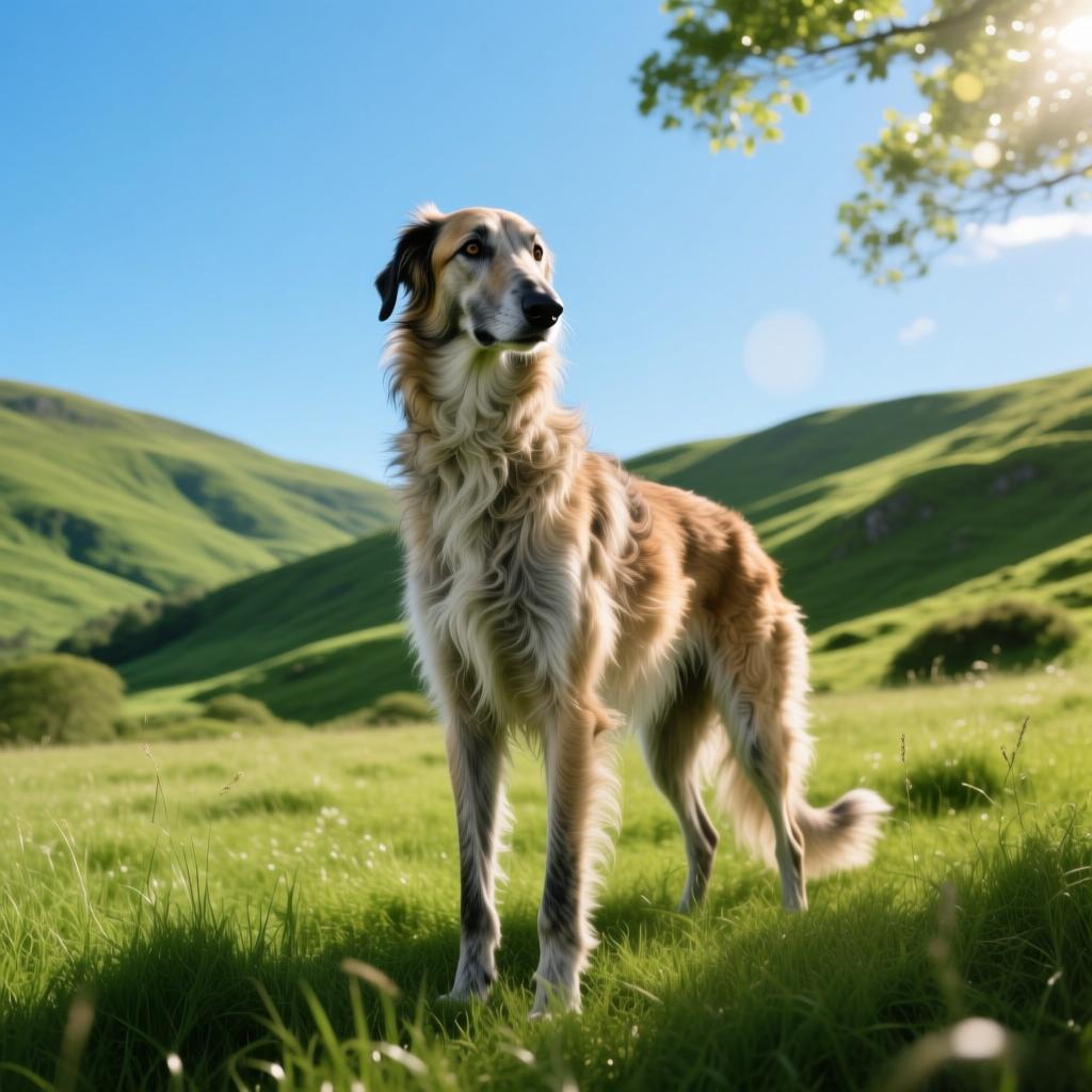 灵缇式流线体型,被毛粗硬、略显“杂乱”;长尾自然下垂,头颈高昂。